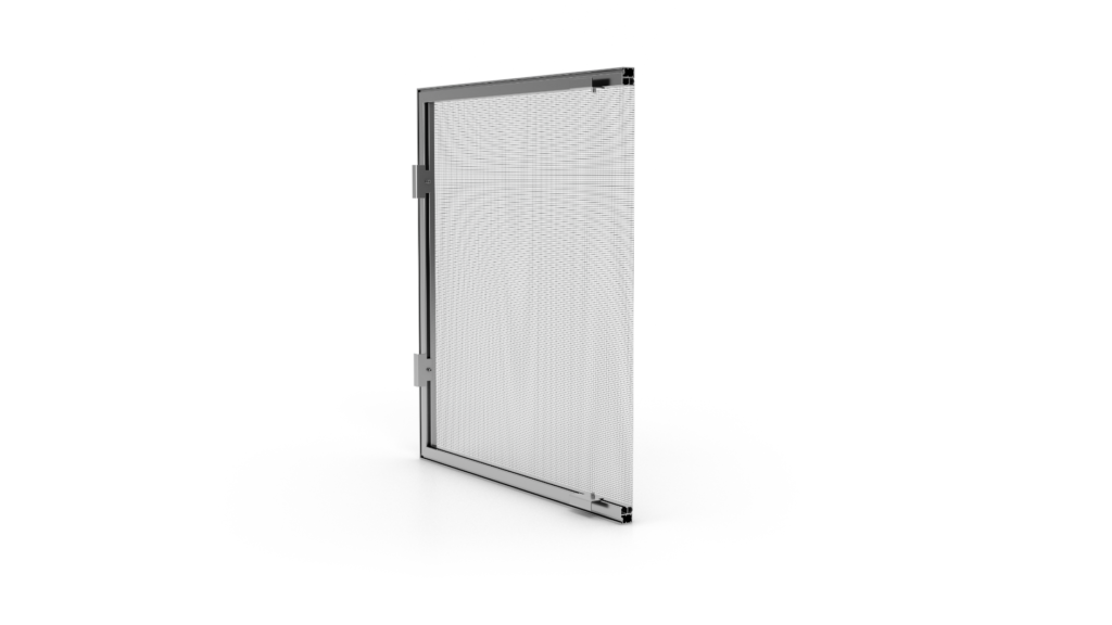 De vliegenhor wordt rechtstreeks op de deurlijst gemonteerd. Eventueel kan het net rechtstreeks op het deurkozijn gemonteerd. Optioneel kan het worden versterkt met een opvulplaat die het net beschermt tegen beschadiging door dieren.
